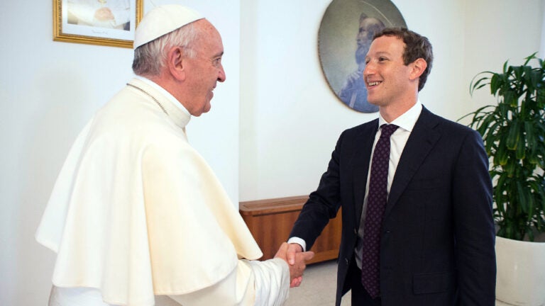Pope Francis chats in person with Facebook CEO Zuckerberg
