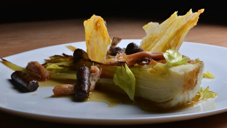 Braised celery gets a well-deserved starring role, accompanied by delectable sheets of crackling chicken skin and black garlic formed into soft knobs of gnocchi. The Rohan duck, raised in upstate New York, is stunning, both to look at — surrounded by bright red circles of raw, pickled, and roasted beets, as well as some beet foam — and to eat, with a rosy, flavorful breast and buttery skin. Just avoid the dots of bitter malt oil on the plate. Last up: a dense date cake with whiskey sauce brightened by a tart lime curd.