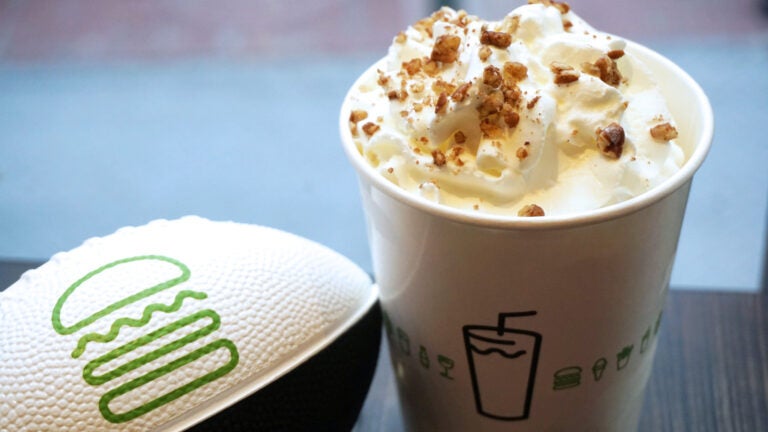Dubbed the “LineShacker,’’ the concoction combines Shake Shack’s creamy vanilla custard with Flour’s pecan sticky bun and is topped with whipped cream and brown sugar cinnamon toasted pecans.
