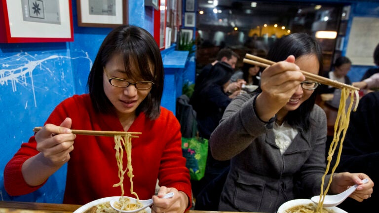 To that end, Yume Wo Katare means “tell your dreams,’’ and the tiny blue room is covered in frames holding the dreams of customers. You can pay $10 to have yours displayed for a month, up to $10,000 to have it up on the walls for 10 years. The logic behind this pricing structure is unclear. I learn this through translator Hinoki Kobayashi, a Harvard student who talked his way into a job after falling in love with the ramen. By writing down your dreams, says Nishioka, you become more accountable to them. If you achieve them, Nishioka will reward you with free ramen, and maybe a T-shirt.
