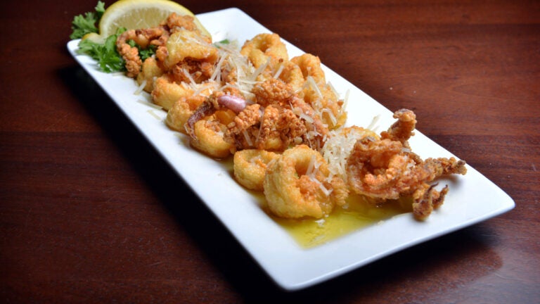 But there are plenty of satisfying options to choose from: perfectly pink prime rib; deep-fried shrimp scampi, served with chunks of garlic and buttery rice; Sicilian calamari, slathered in romano cheese and garlic-infused olive oil; the turkey dinner with mounds of roast breast meat, buttery squash studded with nutmeg, and sweet sausage stuffing.