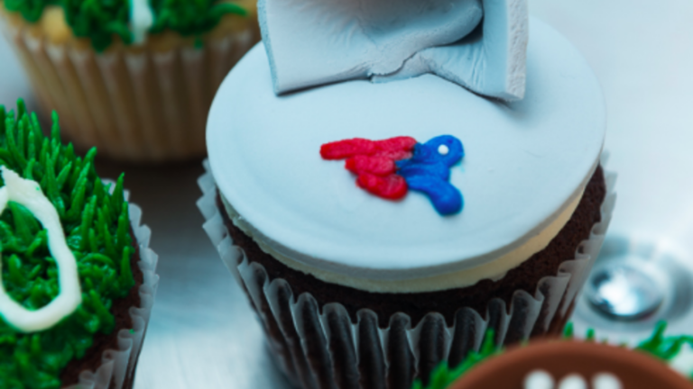 The shop’s other Pats-inspired treats include cupcakes decorated with green, grass-like frosting and a fondant football, and cupcakes topped with red and blue sprinkles and fondant jerseys emblazoned with the numbers of Tom Brady, Rob Gronkowski, Julian Edelman, and the rest of the players on the Patriots roster. The football field cupcakes go for $5.25 each, while the jersey cupcakes run a bit cheaper at $4.25 each.
