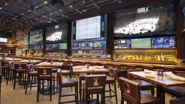 The restaurant chain formerly known as Jerry Remy’s is now the namesake of Tony Conigliaro, another Red Sox great. While the name has changed, the sheer number and size of the TVs at all four of its locations remains impressive. The Seaport location boasts more than 40 TVs and a 32-foot HD video wall, and the Burlington location has four 16-foot screens, 46 TVs, and higher ceilings than its waterfront brethren. Pro tip: A manager for the Burlington location said they were almost completely full a couple hours before the AFC Championship in 2017, so get there early.