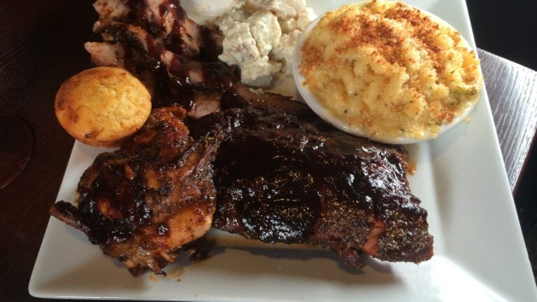 Meanwhile, guests can nosh on the always-available tailgate platter with their choice of slow-cooked Texas-style beef, chicken, pork, or St. Louis-style ribs ($19.99 for two types of meat, $25.99 for three), and sip on blueberry sangria ($9.25) in the Patriots colors of red and blue — made of Cold River Blueberry Vodka, Crème de Mure, prosecco, and cranberry juice. (62 Brookline Ave., Boston)