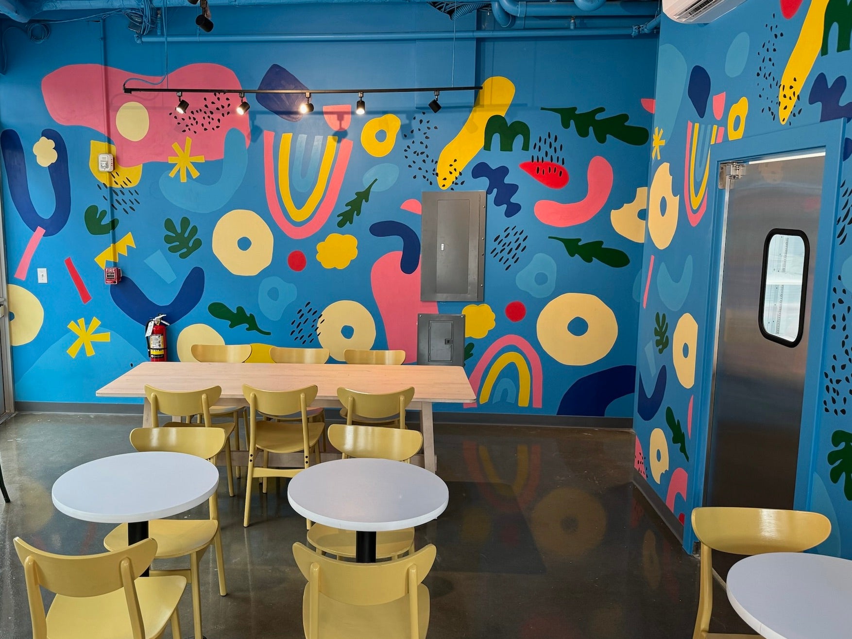 “We have a gigantic mural. Me and my friend Karli painted it,” she said, referring to artist Karli Hendrickson. “The look we were going for is adult kindergarten.”