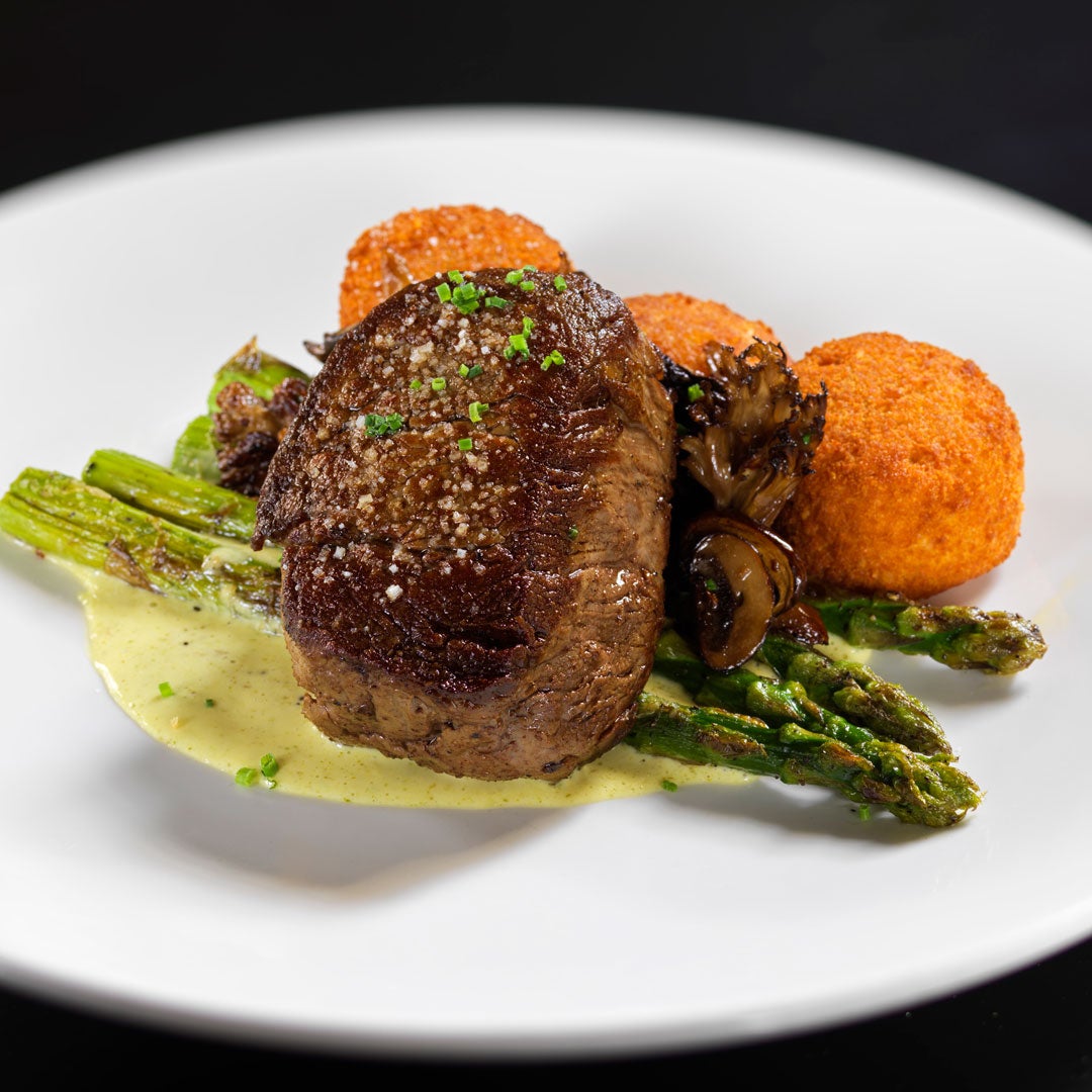 At first glance, one might overlook a filet mignon—but the simplicity of this cut’s preparation that allows the tenderness of the meat to shine through is what makes it so special and representative of “the quality and precision that define our culinary philosophy at Boston Chops.” Served with crisp asparagus, wild mushrooms, creamy goat cheese croquettes and a velvety béarnaise sauce, Piccini says this dish reminds him of an elevated childhood favorite—steak, veggies and a side. “This was a staple in my house growing up and chef Corey takes steak to the next level by preparing the meat with the perfect seasoning blend and cooking to perfection.”