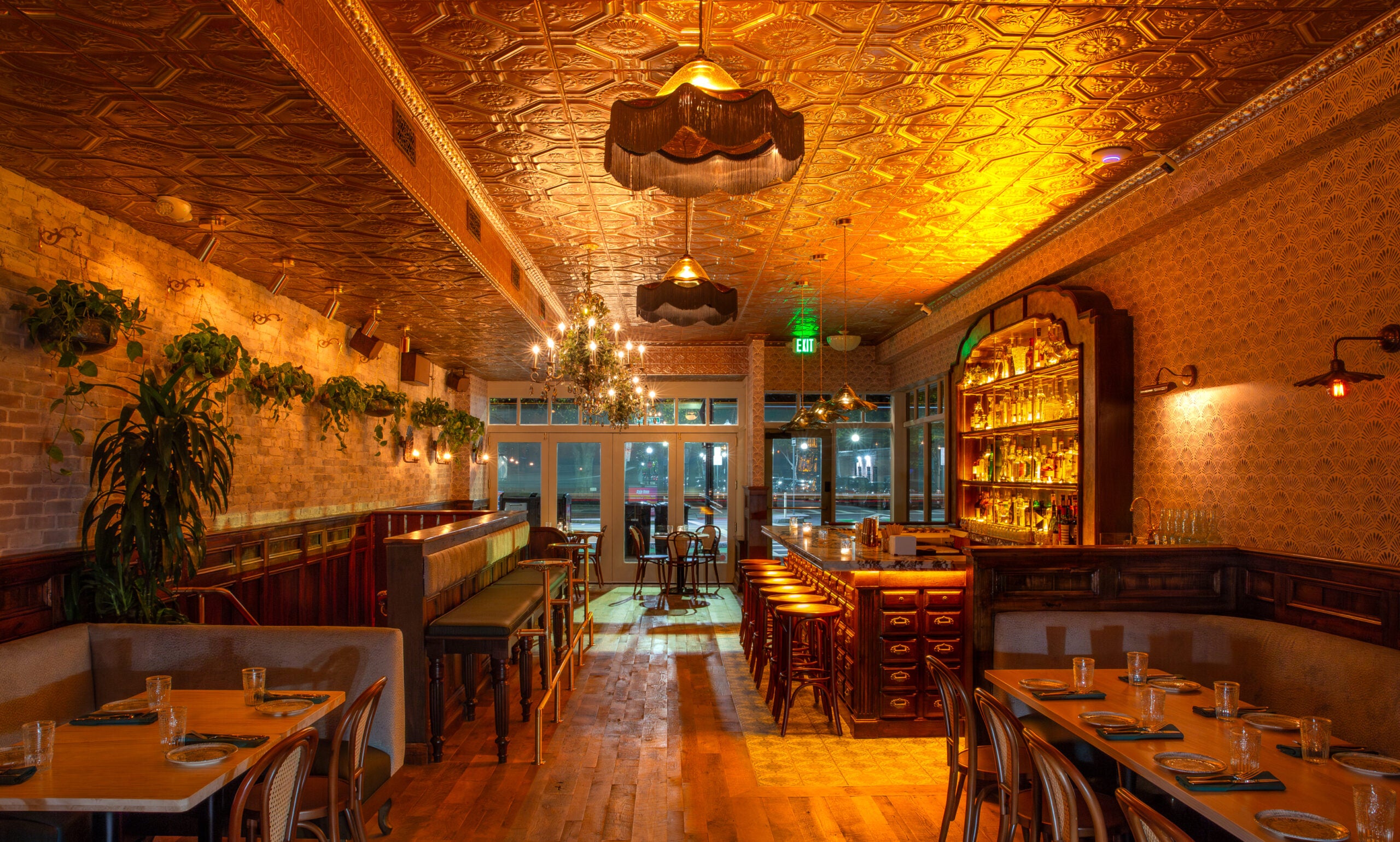 Combining the best attributes of a cocktail lounge and a tapas bar, D16 just opened in the former Back Bay police station—tastefully converted by Assembly Designs. “Every once in a while, in our line of work, you get to place your hands on the past. When asked to design a sexy underground lounge in the unused basement of one of Boston’s oldest police stations, we couldn’t wait to jump on this opportunity,” shared the Assembly Design team. The result: A “classic meets art deco detective vibes.” Guests will feel how special D16 is upon entrance through the custom-built steel staircase that transports them from Boylston Street into an oasis of awe. The space is anchored by a 27-foot-long bar, with clock and brass details, ready to shake up creative cocktails, like the Tidal Bay with Appleton estate rum, absinthe, Fernet-branca, spicy ginger and lime or the Beanpot, built with Gunpowder gin Campari, orgeat and lime. On the food menu: shareable dishes ranging from traditional tapas like croquettes ($13) and gambas al ajillo ($16) to internationally-influenced small plates like steak house sliders ($18), bao buns ($16) and flatbread ($16).
