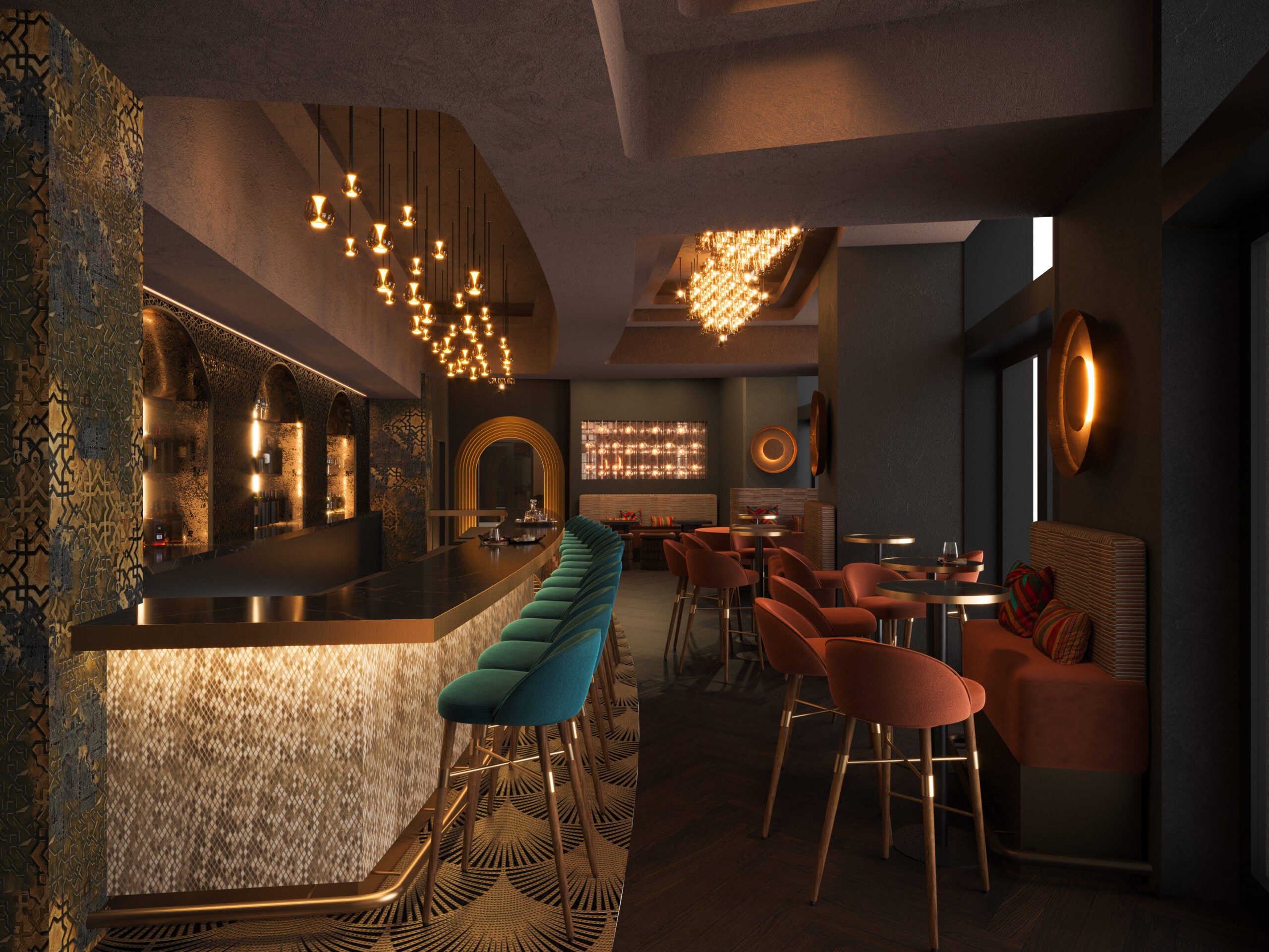 Inspired by the Spanish and Arabic architecture of Andalusia, Marcelino’s will bring an exotic cocktail lounge and mezze-style menu to the Seaport. Every detail of Marcelino’s, from the made-to-order cocktails to the ambiance and cuisine was inspired by the team’s upbringing in the Mediterranean, watching their elders rely on natural ingredients and create the likes of wine, arak, syrup and spices from scratch. The design process spanned more than three years as co-founder Marcelino perfected the room temperature, sound levels and ambiance.