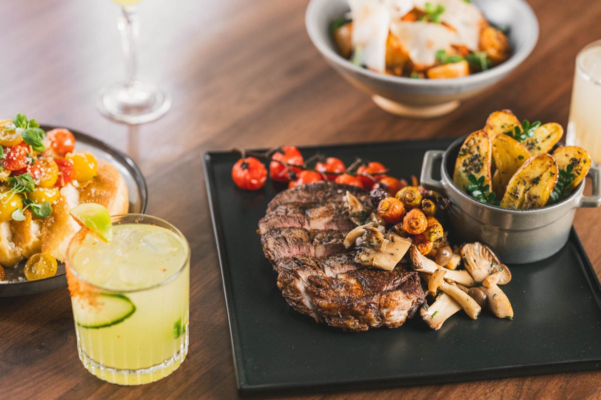 Quincy’s newest restaurant opening is sure to become a neighborhood hotspot with its part old-school pizza joint, part dive bar vibe. Drifters Kitchen and Bar embraces guests with neon signage and muraled walls, offering a mixed menu of classic comfort food, like steak frites ($34), chicken milanese ($24) and mushroom bolognese ($23), and bar-favorite finger foods, including square pizza, wings and loaded burgers with shoestring fries. The pizza is actually a staple on their menu, with late night pies served daily from 10 p.m. to 12 a.m. with toppings like buffalo chicken ($18), fig spread with bacon lardon, goat cheese, arugula and a hot honey drizzle ($18) as well as a caprese option with sweet tomato sauce, fresh mozzarella, fried basil, black olive and basil balsamic drizzle ($16). The full-bar delights with craft cocktails including one of their current bestsellers, Sky’s The Limit, built with tequila, lime, agave, coconut, and blood orange.