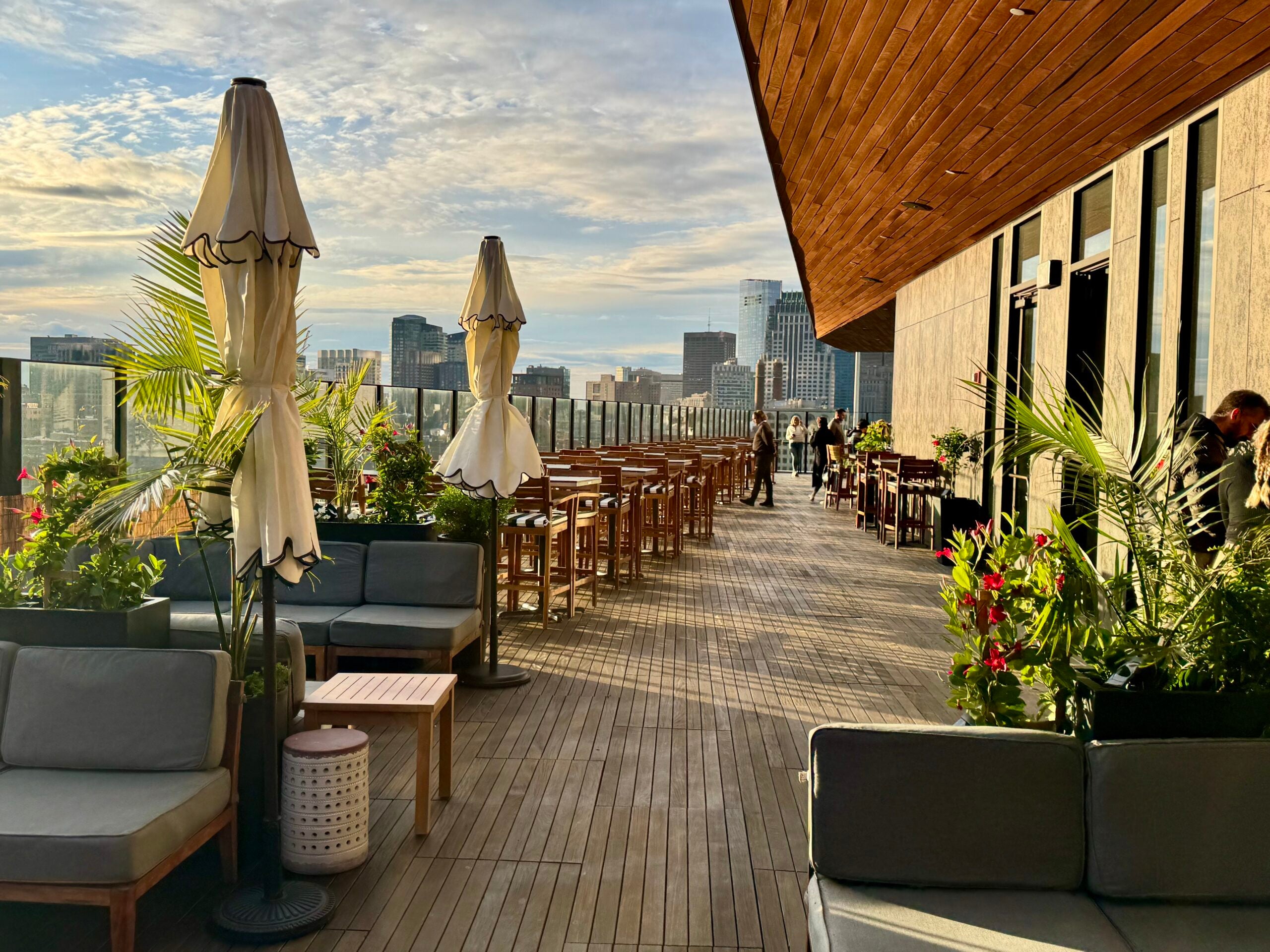 Tucked off the lobby of Cambria Downtown Boston Hotel, Kristin Jenkins of 1928 Beacon Hill has just opened The Essex, a refined eatery led by chef Polit Castillo (formerly of The ‘Quin House). Then, atop the hotel, at the city’s largest rooftop venue, Jenkins presents the Essex Rooftop; though the dual-concept offers a cohesive, modern-European aesthetic in both venues, chef Castillo has designed two separate menus. “We’ve created two distinct experiences that honor Boston’s dining culture while bringing fresh, West Coast-inspired flavors to the heart of the city,” shares Jenkins, who further described The Essex for its “intimate elegance” and the rooftop for its “dynamic energy.” Popular bites at the former include hamachi with ponzu, crispy capers and fennel in meyer syrup ($19), ceviche mixto with crispy calamari and sea bass crudo ($19), Jidori Chicken with crispy quinoa ($28) and a selection of pastas (starting from $20). At the rooftop, guests can expect more cocktail-forward snacks and sandwiches to accompany a collection of signature dishes and spritzes, like hummus and labneh dips ($16 each), a lobster roll with miso butter, corn, kewpie, garlic, chili chive (market price) and prosciutto caprese panini ($16).