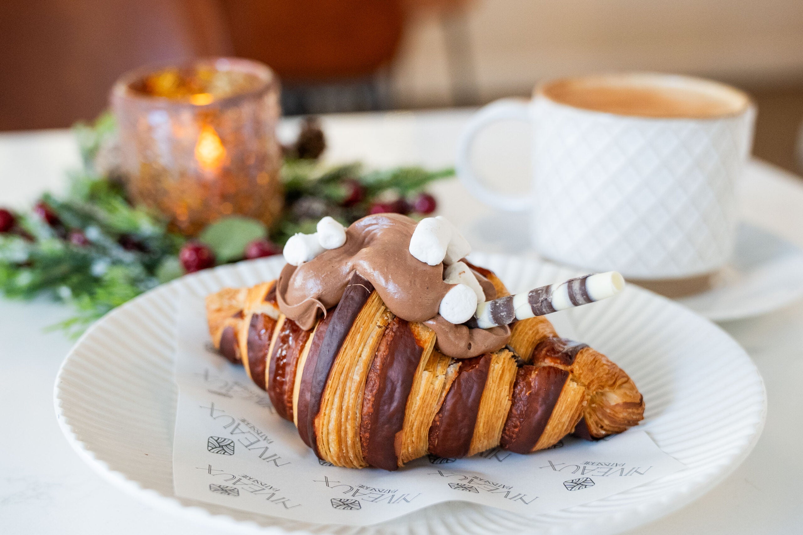 Under $20 recommendation: Executive pastry chef Robert Gonzalez recommends a croissant-and-coffee combo, like the pistachio latte and raspberry cheesecake croissant. “It’s filling, it feels a little indulgent, and it still fits the budget.” Food writer Katelyn Umholtz had a similar order: a rich, chocolate-filled croissant decorated like a cup of hot cocoa with a nutty banana bread latte, both $8.50 each.
