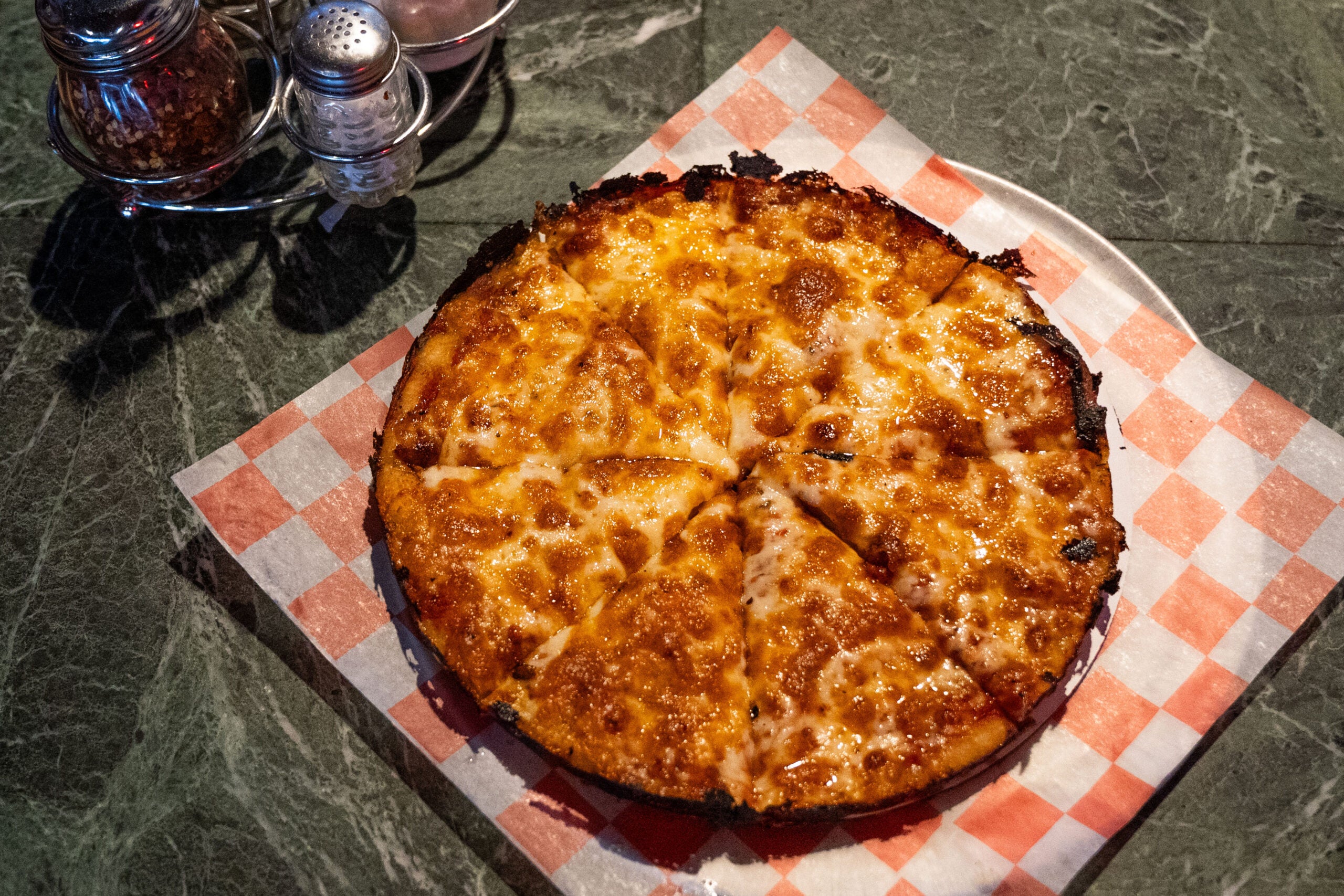 A cheese bar pizza from Alumni Pizza. Kelly Chan/Boston.com