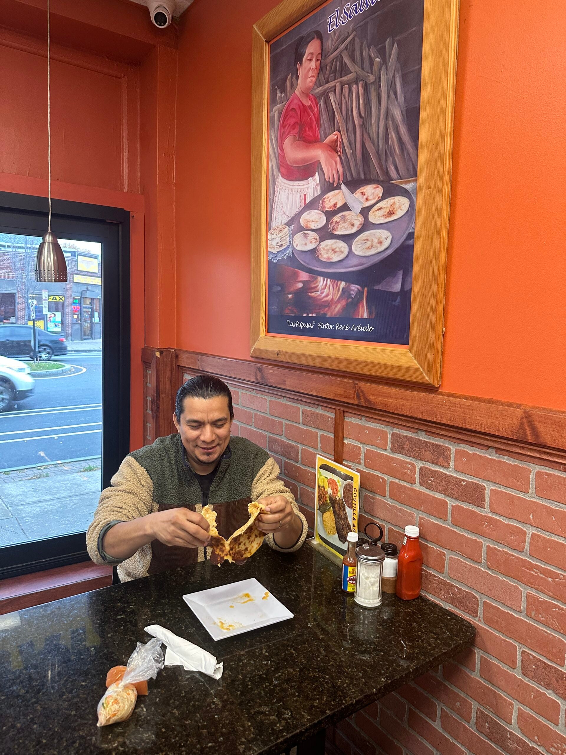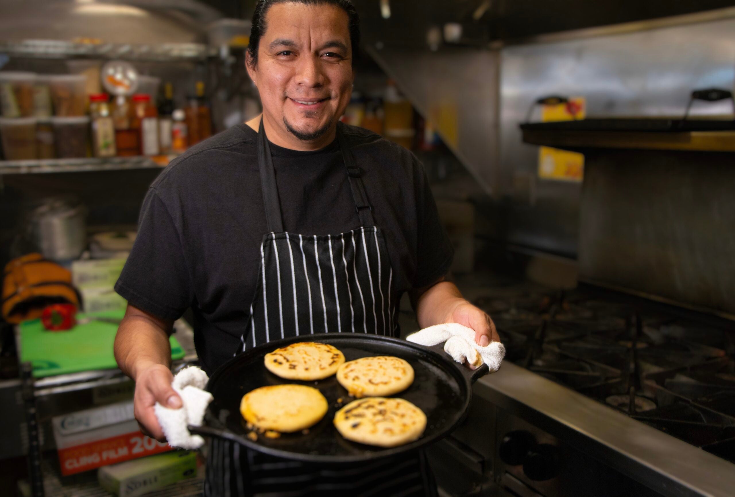 An employee at the restaurant overhears our conversation and shows us a video of a record-breaking 18-foot-wide pupusa from El Salvador’s Olocuilta Festival, held on National Pupusa Day in November. It’s a reminder for Orellana of why he started this journey.