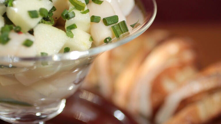 In a ceviche, fish is “cooked’’ in an acidic marinade. In this recipe, sweet Nantucket bay scallops, in season now, are left in lemon and lime juice. Bistro du Midi chef and partner Robert Sisca serves the ceviche in scallop shells (available at Captain Marden’s Seafoods, 279 Linden St., Wellesley, 781-235-0860.) Or serve on bibb lettuce leaves or in small glass or porcelain cups.