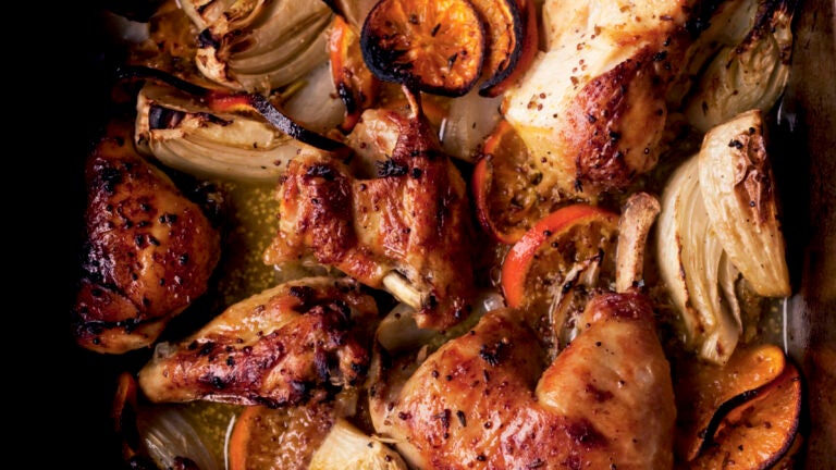 3. Arrange the chicken, fennel, and clementines on a serving plate; cover and keep warm.