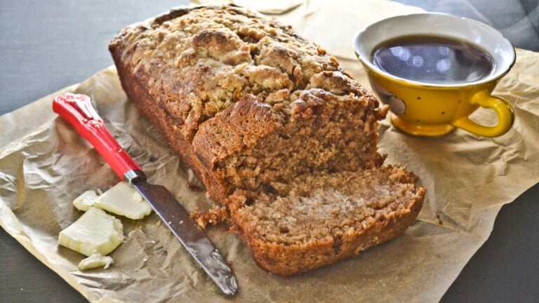5. Bake the bread for 40 minutes or until a skewer inserted into the middle of the loaf is clean when withdrawn. Cool the bread in the pan for 15 minutes. Turn out and serve warm with butter. Katherine Hysmith