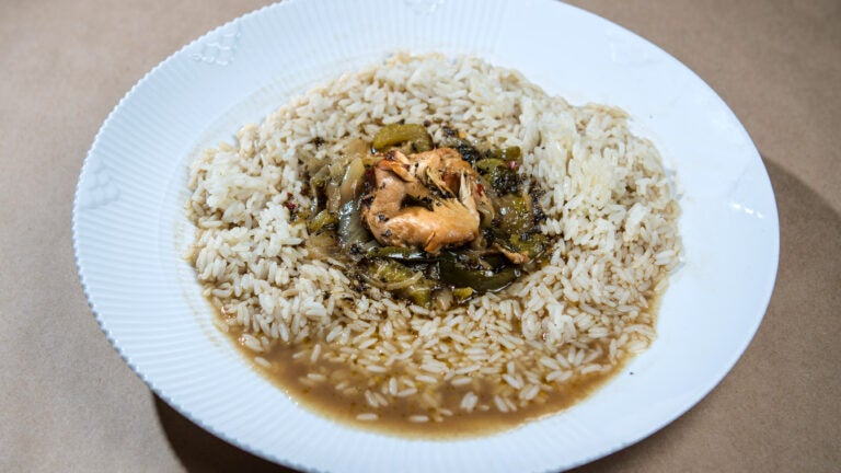 A combination of Greg Dickinson’s techniques and flavor preferences and his mother’s traditional family gumbo from her food blog (Weekdayrambler.com), this gumbo is made with chicken thighs and legs, sausages, and a roux that takes 15 to 20 minutes. Dickinson’s mother, Dot, prefers to use oil and broth for her roux, Dickinson insists on the heartier combination of olive oil and meat renderings, then the kick of spicy white vermouth. Serve this gumbo over bay leaf-infused jasmine rice.