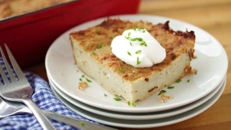 Potato puddings typically begin with grated potatoes and onions, and sometimes an egg or two is added to the batter before baking it in a casserole. From there, this homey dish gets some personality. In this Lithuanian version from Debbi Dymek of Millbury, who got it from her mother, crisp bacon is added with the eggs. “This recipe has been in my family for years,’’ she writes. “I serve it on Sunday with maple roast pork and green beans.’’ Gather extra help for grating the potatoes. According to Dymek, “I have tried using a food processor, but the texture is much better when I grate by hand.’’ You begin with 5 pounds.