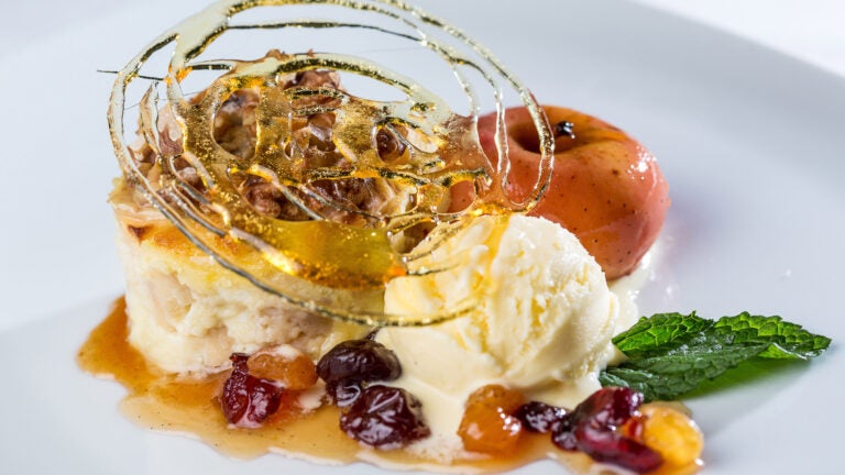 Desserts at even the best restaurants can feel sweetly familiar and safe (chocolate lava cake, I’m looking at you) but at Rialto they show just as much creativity as what came before. A light chocolate-chestnut cream puff is accompanied by crunchy almond-cocoa sorbet and a caramelized pear. Trifle in a parfait glass, layered with beautifully contrasting pink grapefruit and mango, and rose prosecco cream, is topped by a crisp cartaletta cookie. The walnut-apple bread pudding puts other, heavier versions to shame, with its glazed crab apple nestling beside the warm pudding, and a dice of jewel-colored dried fruit. From start to finish, chef Jody Adams’s kitchen delivers real artistry, never forgetting that its first job is to be simply delicious. Rialto will serve a three-course fixed price menu for $95 on its Valentine’s menu.