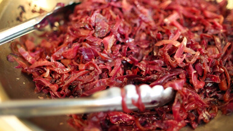 5. Lower the heat to medium-low, cover the pan, and cook, stirring occasionally, for 1 hour or until the cabbage is very tender. If the pan seems dry, add a little more stock or water. Taste for seasoning and add more salt and pepper, if you like. Adapted from Carolyn Johnson