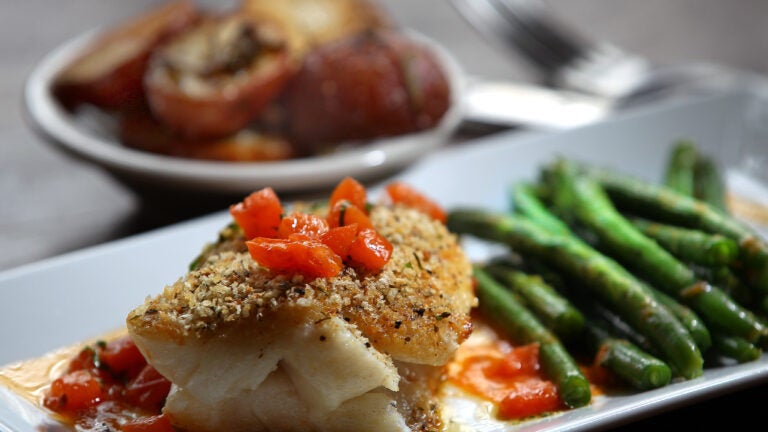 So I order them, just to see what arrives — and perhaps prove her wrong, because I have a good feeling about this place. My Parmesan-panko-crusted cod ($15.50), a thick moist piece of fish, comes garnished with green beans and garlic-roasted red potatoes with plenty of caramelized edges. The beans are bright, fresh, and cooked just right.