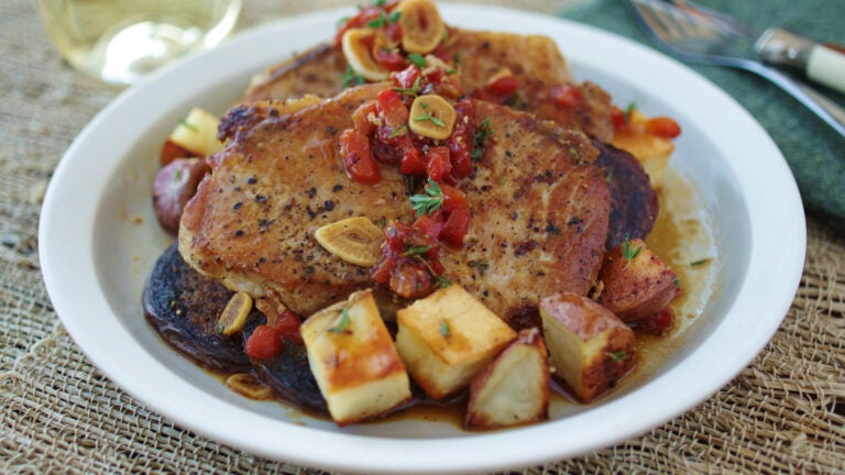 Recipe for pork chops with toasted garlic and roasted red pepper