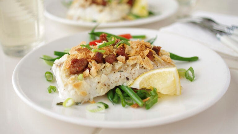 3. Roast the fish for 12 minutes or until it starts to flake and becomes opaque in the center. Set aside 3 pieces of fish for the fish cakes. Sprinkle the remaining pieces with scallions and serve with lemon. Tony Rosenfeld