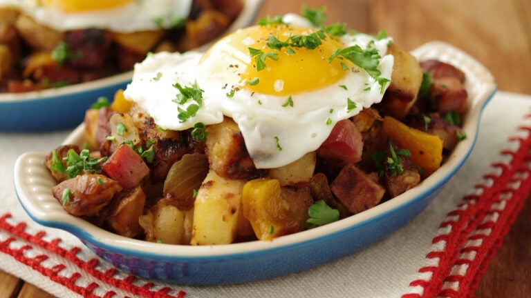 New Englanders who love red flannel hash made with leftover corned beef will also like this hash, based on ham and golden potatoes. Use a large, heavy skillet (cast iron works well) and flatten the hash so it browns well. The reward will be potatoes with delicious, crispy edges. Top with a fried or poached egg and serve with hot sauce, if you like
