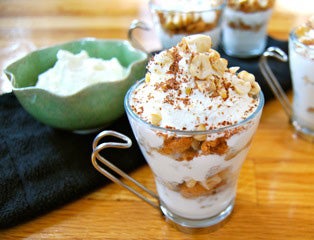 Similar to cannoli filling, this sweetened ricotta mixture, layered with crushed amaretti cookies and toasted hazelnuts, is a unique twist on a classically layered parfait dessert.
