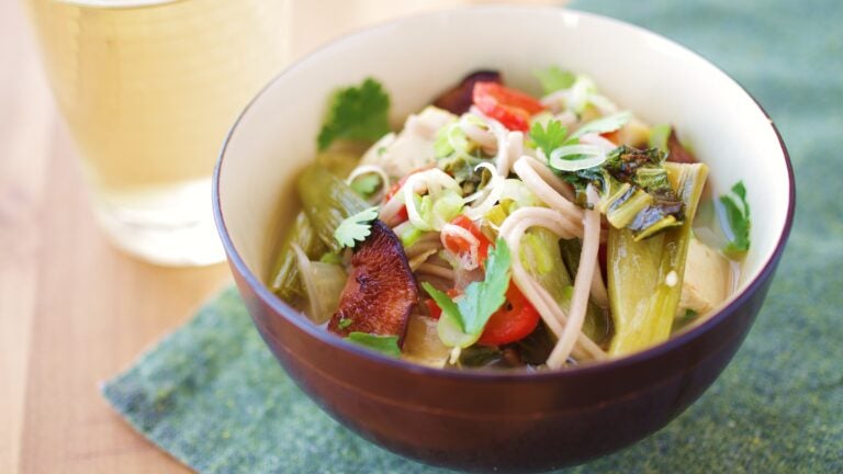 Recipe for soba noodles and tofu in caramelized onion broth