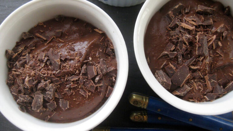 Note: You’ll need a chocolate pudding recipe. If you have the time to make it from scratch, check out Alice Medrich’s recipe via the Boston Globe (pictured above). If you’re in a hurry, feel free to whip up a batch of instant or stovetop pudding (just make sure it chills for long enough before layering your desserts).