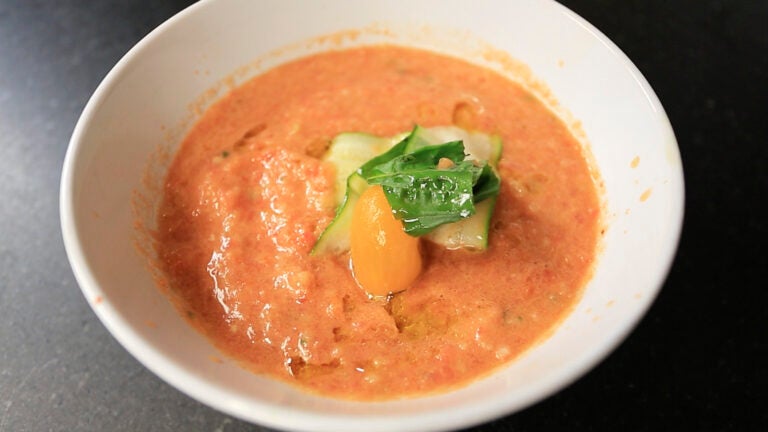 Chef and Owner William Kovel of Kendall Square’s Catalyst Restaurant shows us how to create summer’s coolest soup, gazpacho.