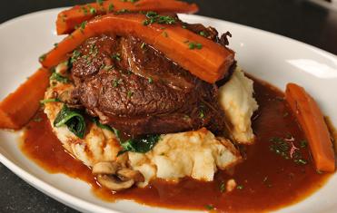 To Finish: Serve the roast with a creamy mashed potato or polenta. Top your starch with the roast, sautéed vegetables and the braised carrots and serve.