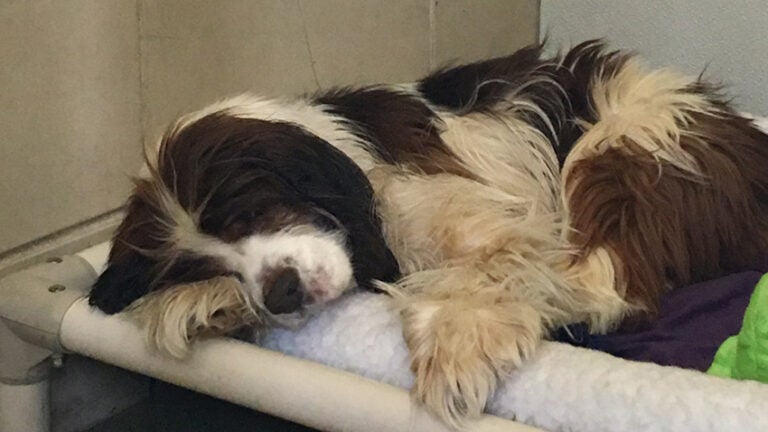 The blind, 10-year-old dog was one of eight dogs brought to the shelter during the last week of March, according to a statement from the MSPCA.