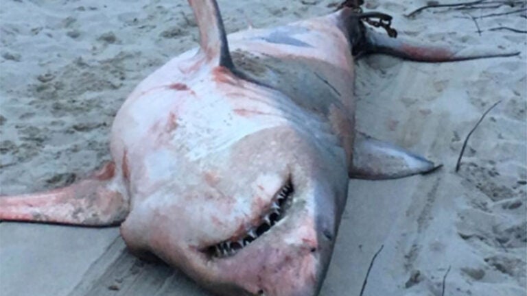 The Cape Cod Times reported the shark was first spotted struggling in the tides by a beach-goer Sunday afternoon. By the time officials from the Chatham-based Atlantic White Shark Conservancy arrived at the scene, the shark had died.