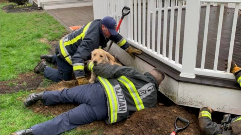The Hanover Fire Department was called to a home on Ledgewood Drive Tuesday morning to free a golden retriever stuck under a backyard deck. The department shared photos of the rescue on Facebook. “The dog managed to get himself under the deck but could not get out,” officials wrote on Facebook. “Multiple attempts by the homeowner were unsuccessful.”