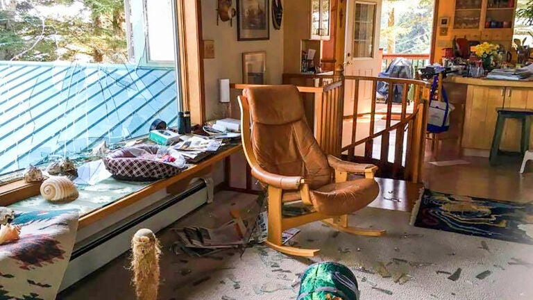 ‘‘If you could have seen the house, it really looked like a bomb had gone off,’’ she said. ‘‘There was glass that had been thrown into a bookcase that was 25 feet (7.6 meters) away and all over the furniture. The carpet was sparkling with glass.’’