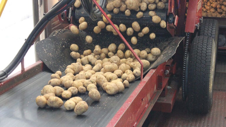 The company follows the growing cycle of the potato when purchasing spuds. This time of year, the company receives potatoes from a farm in North Carolina. Western Massachusetts and New York provide the potatoes in August and September. The Spudnik, left, potato unloader is the starting point for the chip production.