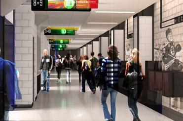 The fourth and seventh floor concourses will receive new flooring, and LED screens will be installed on the walls, which can show photos uploaded by fans to social media through the new wireless network. Other digital signs will show sponsor messages. Images of sports stars from the past will also adorn the walls.