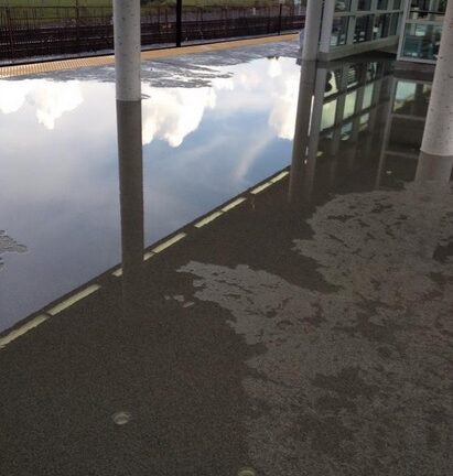 MBTA spokesperson Kelly Smith told Boston.com that drainage is still on the to-do list for the new station. “Assembly opened yesterday for service but is not completed,’’ Smith said. “Finishing work will continue as construction is fully completed and the issue will be addressed.’’