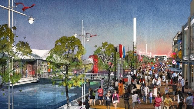 Here’s an illustration of an Olympic Boulevard at the center of the Games: