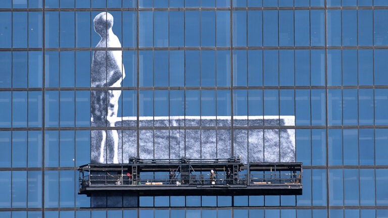 His mystery man isn’t finished yet, though. Once completed, the instillation will take over 200 Clarendon’s windows between the 44th and 50th floors and will be 150 feet wide and 86 feet tall, according to The Boston Globe.