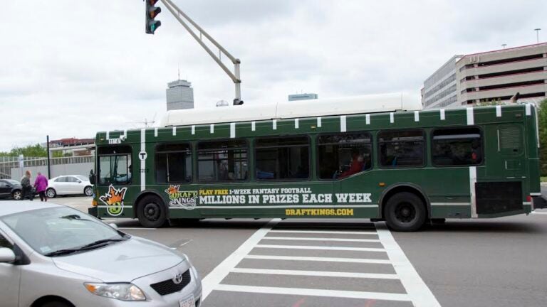 DraftKings has also purchased wraparound ads on two MBTA buses (seen above) for the price of $8,500 every four weeks per bus, Pesaturo said.