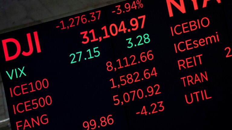 NEW YORK (AP) — Stocks tumbled to their worst day in more than two years Tuesday, knocking the Dow Jones Industrial Average down more than 1,250 points, following Wall Street’s humbling realization that inflation is not slowing as much as hoped.