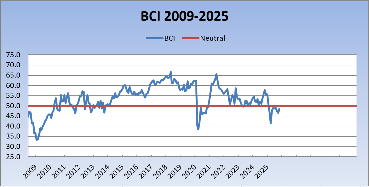 The index also found that larger companies were more confident about their business conditions than medium-sized and smaller companies.
