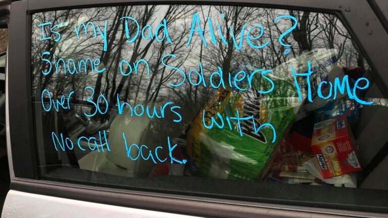 When Kenney heard about the problems at the home, she started frantically calling to get details about her father, Charlie Lowell, she said. After failing to get a hold of anyone for hours, she took a blue grease pencil and wrote on her car windows: “Is my dad alive? Shame on Soldiers Home. Over 30 hours with no call back.”