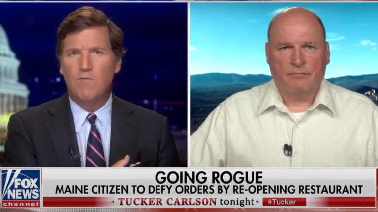 “We’re encouraging all businesses in Maine to open up,” he said on the program. “We should have never been shut down in the first place. We need to open back up, get this summer tourist business going, or we’re going to lose a third of our restaurants (and) who knows how many motels and other businesses. So we’re advocating for everybody, not just for my restaurant. It’s time to go back to work.”