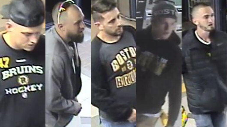 Transit police arrested four men in connection to an assault at the MBTA’s North Quincy Station last week that authorities say left a victim with an injured face.The charges, announced Wednesday, come two days after police released surveillance photos of five men wanted for questioning regarding the alleged attack early on May 10.Through the tips investigators received, four men brought themselves before police and were arrested, authorities said in a statement. They are Stiles Bezema, 21, of Wrentham; Antonio Green, 31, of Feeding Hills; John Pritoni, 29, of Norfolk; and Thomas Pritoni, 23, of Norfolk, according to police. All were charged with aggravated assault and battery resulting in serious injuries, officials said.Officials did not specify the identity of the fifth man.On Monday, police released a statement asking for the public’s help identifying the five men, several of whom can be seen wearing Boston Bruins garb in photos provided by officials. The hockey fans “viciously beat” their victim, who suffered “facial fractures,” according to the statement.