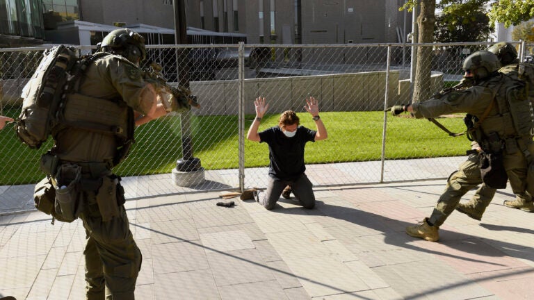 DENVER (AP) — A private security guard working for a TV station was in custody Saturday after a person died from a shooting that took place during dueling protests in downtown Denver.