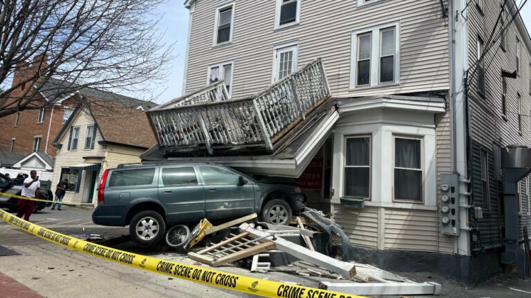 Police were called to the crash at 91 Broadway St. at 1:35 p.m. There, police said they found that a Volvo station wagon had crashed into the front of a house.
